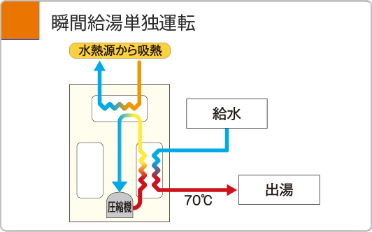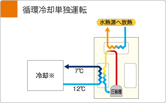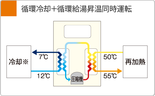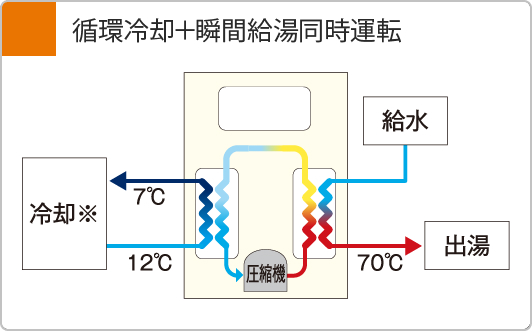 〈冷却:冷水入口=12℃/出口=7℃、熱源水:入口=15℃/出口=20℃〉 〈加熱:熱源水入口=12℃/出口=7℃、温水:入口=40℃/出口=45℃〉 〈給湯:熱源水入口=12℃/出口=7℃、給水=17℃/出湯=70℃〉
